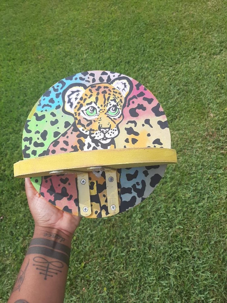 90s inspired colorful leopard shelf. Approximately 10 inches wide. Stamped, sealed, and ready to hang.