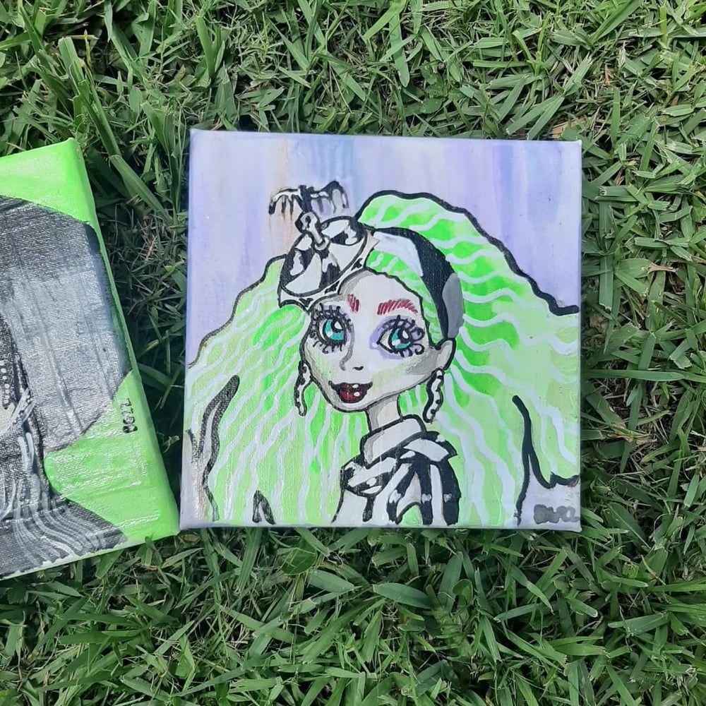 Mini portraits of Beetlejuice inspired dolls. Varnished and ready to hang.