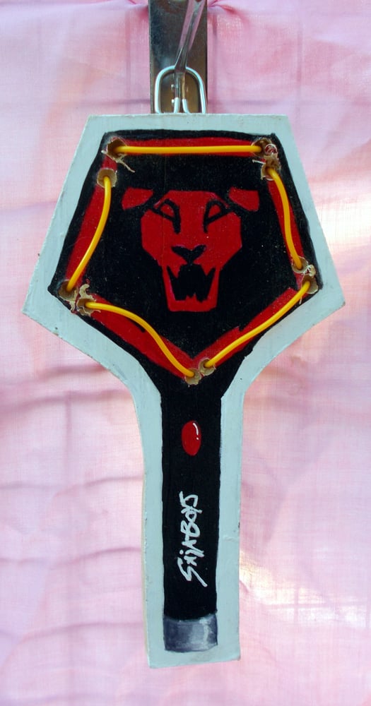 Woodcut and handprinted light sticks. Battery operated LED lights are included and wands light up with controller on back. Varnished, stamped, and ready to hang.
