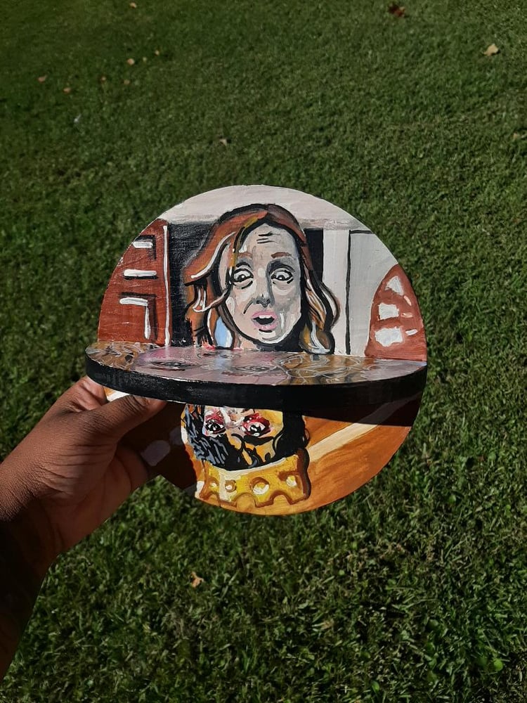 8 in mini shelf inspired by the movie Hereditary. Varnished, stamped, and ready to hang.